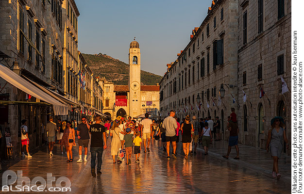 Croatie Dubrovnik gens Gradski zvonik patrimoine patrimoine mondial UNESCO photo horizontal rue Stradun Tour de l'horloge touriste vieille ville