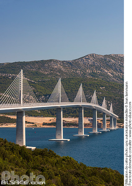 Baie de Mali Ston Croatie Dubrovnik-Neretva montagne photo vertical pont pont a hauban Pont de Peljesac pont suspendu