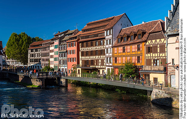 Alsace architecture traditionnelle colombage cours d'eau facade ill maison alsacienne passerelle patrimoine petite france Quartier de la Petite France quartier touristique riviere Strasbourg Passerelle des Anciennes Glacières