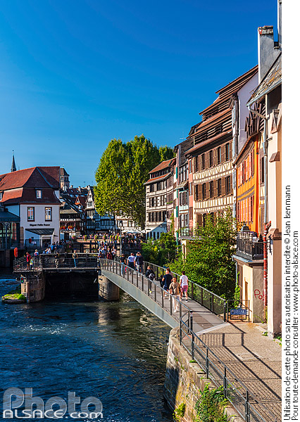 Alsace architecture traditionnelle colombage cours d'eau facade ill maison alsacienne passerelle patrimoine petite france Quartier de la Petite France quartier touristique riviere Strasbourg Passerelle des Anciennes Glacières