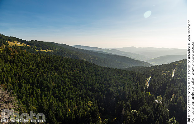 Point de vue sur les vosges depuis le belvédère du rocher Hirschsteine, Réserve naturelle de Frankenthal-Missheimle, Parc naturel régional des Ballons des Vosges, Haut-Rhin (68)