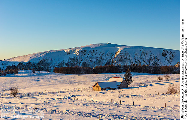 Photo : Le Hohneck sous la neige en l'hiver vue depuis les Trois Fours, Parc naturel régional des Ballons des Vosges, Haut-Rhin (68) - (ref. 240112-056) © Jean Isenmann