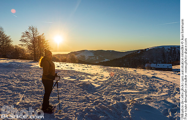 Alsace femme Haut-Rhin hiver neige Parc naturel régional des Ballons des Vosges parc naturel regional photo horizontal randonnee raquette soleil sport d'hiver vosges Vosges du Sud