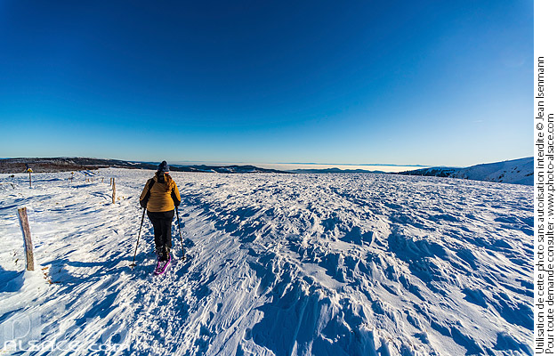 Photo : Randonnée en raquettes sur les Haut de Falimont en hiver, Parc naturel régional des Ballons des Vosges, Vosges (88), Lorraine, France