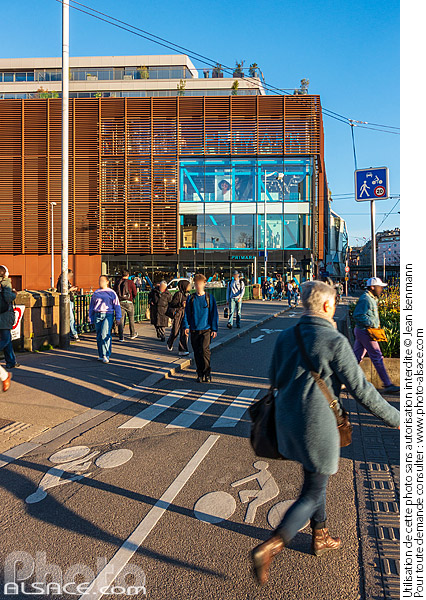 Piste cyclable et magasin Primark au centre ville de Strasbourg, Pont de Paris, Strasbourg, Bas-Rhin (67)