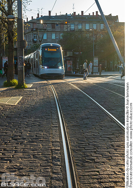 Ligne de Tramway devant les Halles, Quai Kléber, Strasbourg, Bas-Rhin (67)