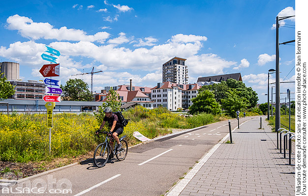 Alsace cycliste photo horizontal piste cyclable Port du Rhin quartier Quartier Coop Strasbourg ville