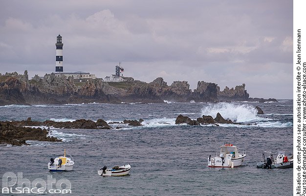 bateau Bretagne Finistère Ile d'Ouessant Ouessant phare Phare du Créac'h photo horizontal Plage de Yuzin rocher vague