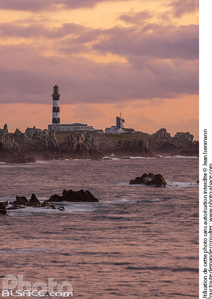 Bretagne crepuscule Finistère Ile d'Ouessant mer ocean Ouessant paysage maritime phare Phare du Créac'h photo vertical rocher