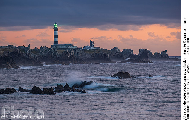 Bretagne crepuscule Finistère Ile d'Ouessant mer ocean Ouessant paysage maritime phare Phare du Créac'h photo horizontal rocher