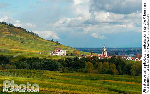automne eglise paysage agricole photo horizontal route des vins d'alsace vigne vignoble village