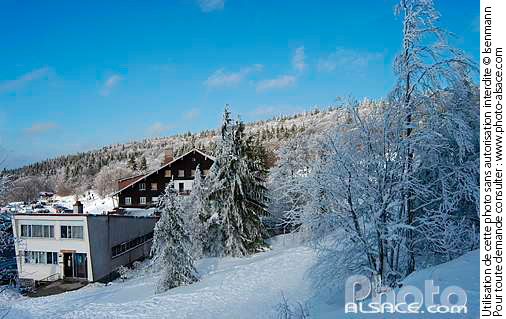 arbre chalet hiver maison neige photo horizontal station de ski Vosges