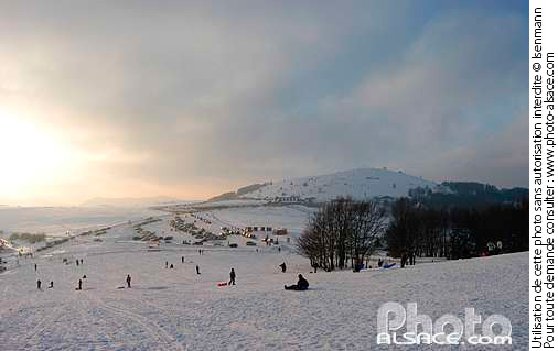 hiver loisir luge neige paysage de montagne photo horizontal piste soleil (coucher) sport station de ski