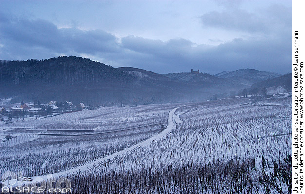 chateau chemin hiver matin montagne neige paysage agricole photo horizontal route des vins d'alsace vignoble