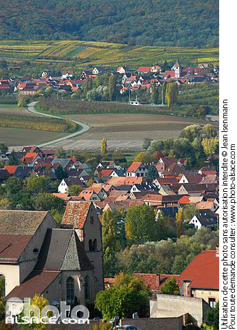 Villages de Dangolsheim, Berbieten et Balbronn, au premier plan l'église Saint-Pancrace de Dangolsheim, Bas-Rhin (67)