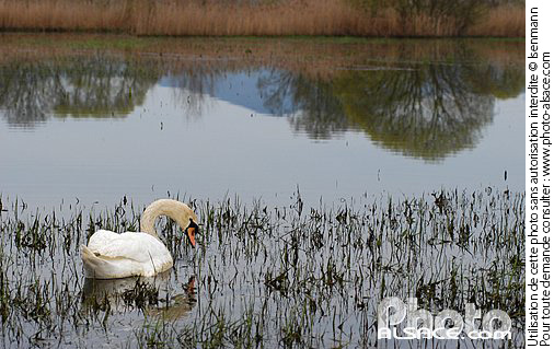arbre crue cygne eau environnement faune inondation oiseau photo horizontal prairie reflet ried