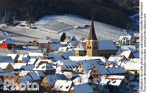 eglise hiver maison neige patrimoine photo horizontal route des vins d'alsace toiture village vue de haut