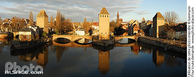 architecture medievale cathedrale cours d'eau eau fortification patrimoine photo panoramique pont Ponts Couverts quartier touristique reflet riviere tour
