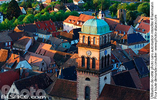 architecture religieuse clocher eglise maison photo horizontal route des vins d'alsace toiture village vue de haut