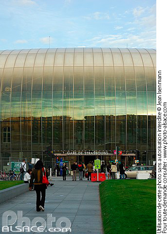 architecture contemporaine facade gare Gare de Strasbourg gens photo vertical place place publique verriere voyageur