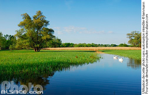 arbre cygne eau environnement inondation nature paysage photo horizontal prairie printemps reserve naturelle Reserve naturelle du delta de la Sauer
