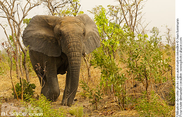 Bénin, Atakora, Parc national de la Pendjari, Vieil éléphant d'Afrique (Loxodonta africana) sans défense et solitaire // Benin, Atakora, Pendjari National Park, Old African Elephant (Loxodonta african