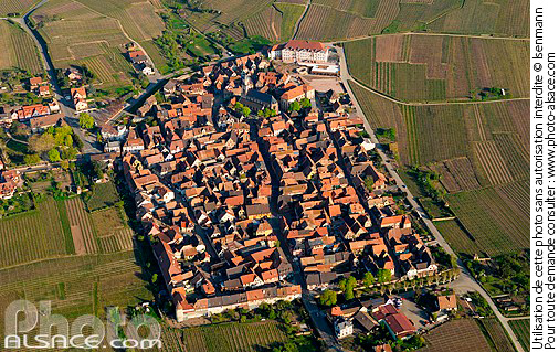 paysage viticole photo aerienne photo horizontal printemps route des vins d'alsace vignoble village
