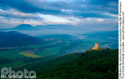 architecture medievale brume chateau foret montagne nuage patrimoine paysage paysage de montagne photo horizontal printemps val de ville vallee vosges vue de haut
