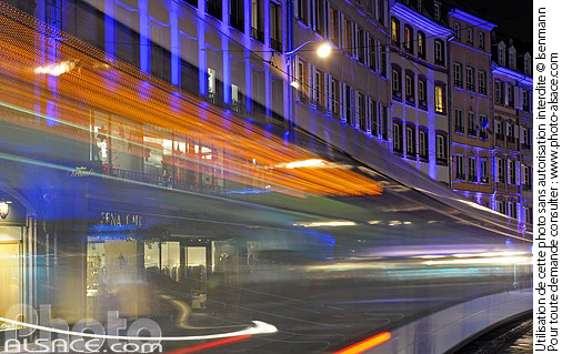facade flou illumination immeuble lumiere noel photo horizontal rame de tramway rue vitesse