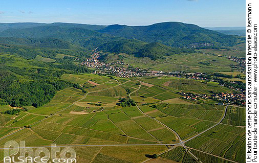 foret montagne photo aerienne photo horizontal piemont printemps route des vins d'alsace vignoble village vosges