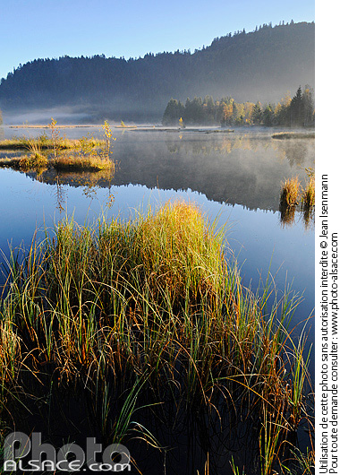 automne brume eau herbe lac milieu naturel parc naturel paysage photo vertical pn reflet tourbiere Vosges