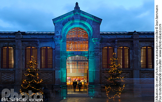 Illumination de Noël du Marché Couvert, Rue des Vignerons, Colmar, Haut-Rhin (68)