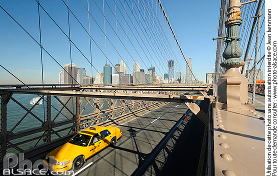 architecture Brooklyn Bridge New York ouvrage d'art patrimoine photo horizontal pont pont suspendu taxi