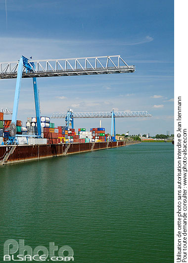 Allemagne bassin portuaire conteneur grue photo vertical port Rhenanie-Palatinat transport fluvial