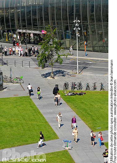 amenagement paysager architecture architecture contemporaine gare Gare de Strasbourg photo vertical pieton place place publique verriere vue de haut