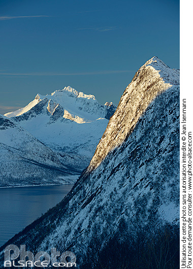 fjord hiver Ile de Senja montagne neige Norvège Norway paysage photo vertical Senja